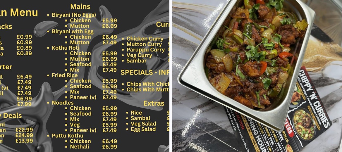 Chippy ‘N’ Curries specializes in fish and chips and Sri Lankan food. You can enjoy a unique fusion of flavors, combining traditional British chippy staples with delicious Sri Lankan dishes.